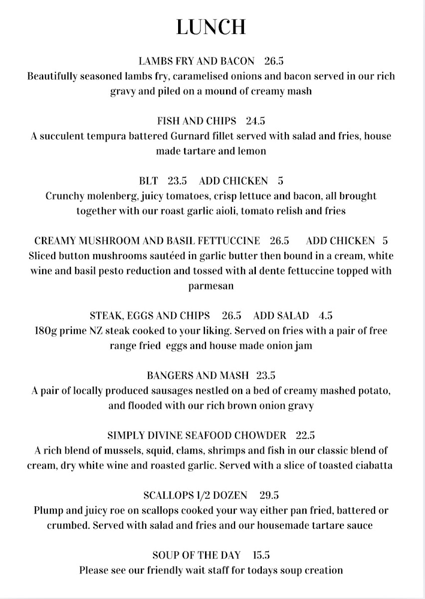 Welcome to Simply Divine Cafe, a charming spot nestled in the heart of Egmont Village, New Zealand. Known for its delightful all-day brunch offerings, the menu boasts enticing options like Eggs Benedict, Mushrooms on Toast, and the heavenly Divine Fruit Crepes, each crafted with care and attention to detail. For those with a sweet tooth, the cafe presents delectable desserts such as the Gourmet Cheesecake of the Day and Chocolate Brownie, elevating your dining experience to new heights.